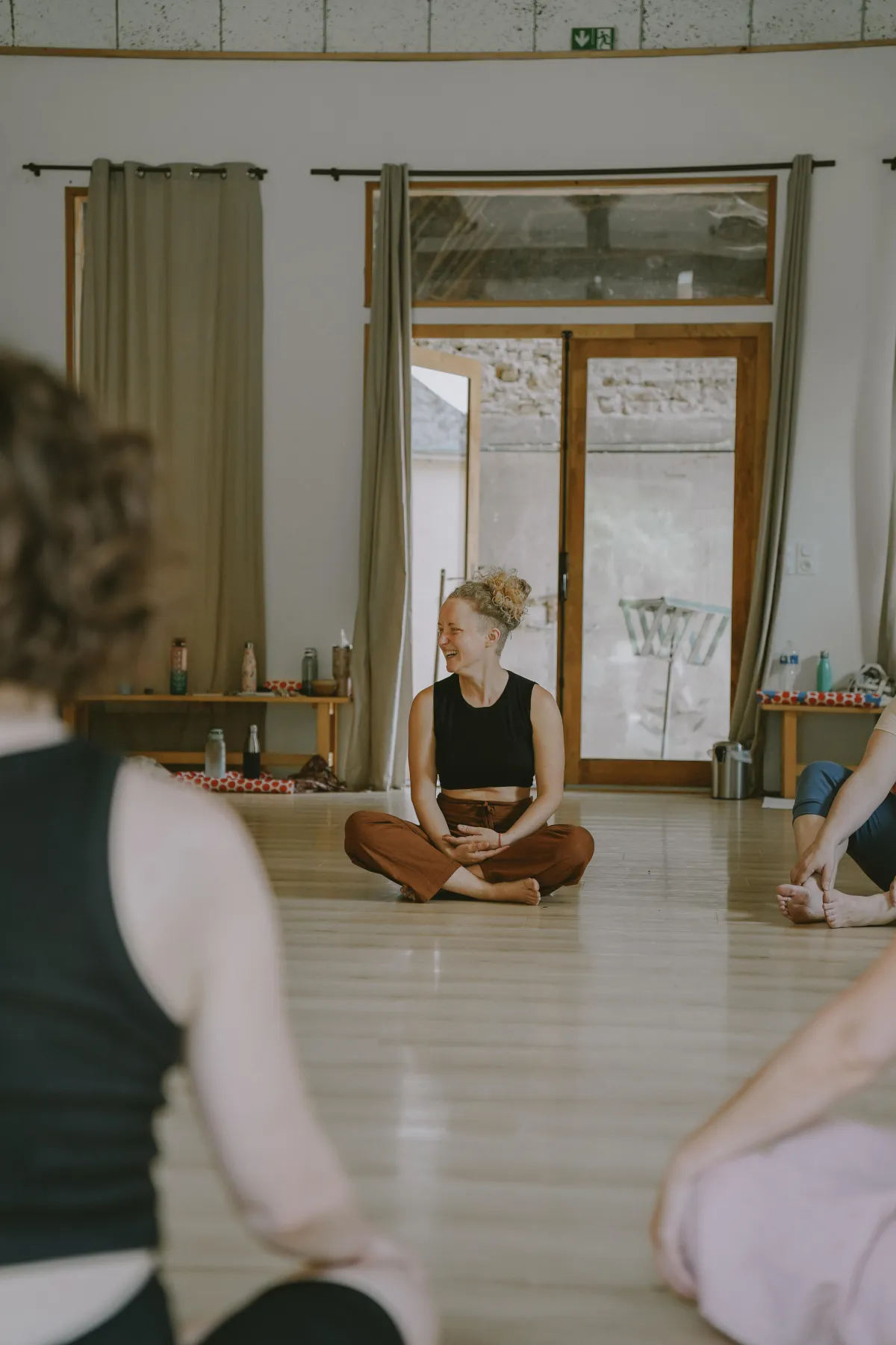 Julie guide avec une attention particulière au groupe, toujours à l’écoute, et son énergie nous reconnecte à notre corps, à notre cœur et à nous-mêmes.